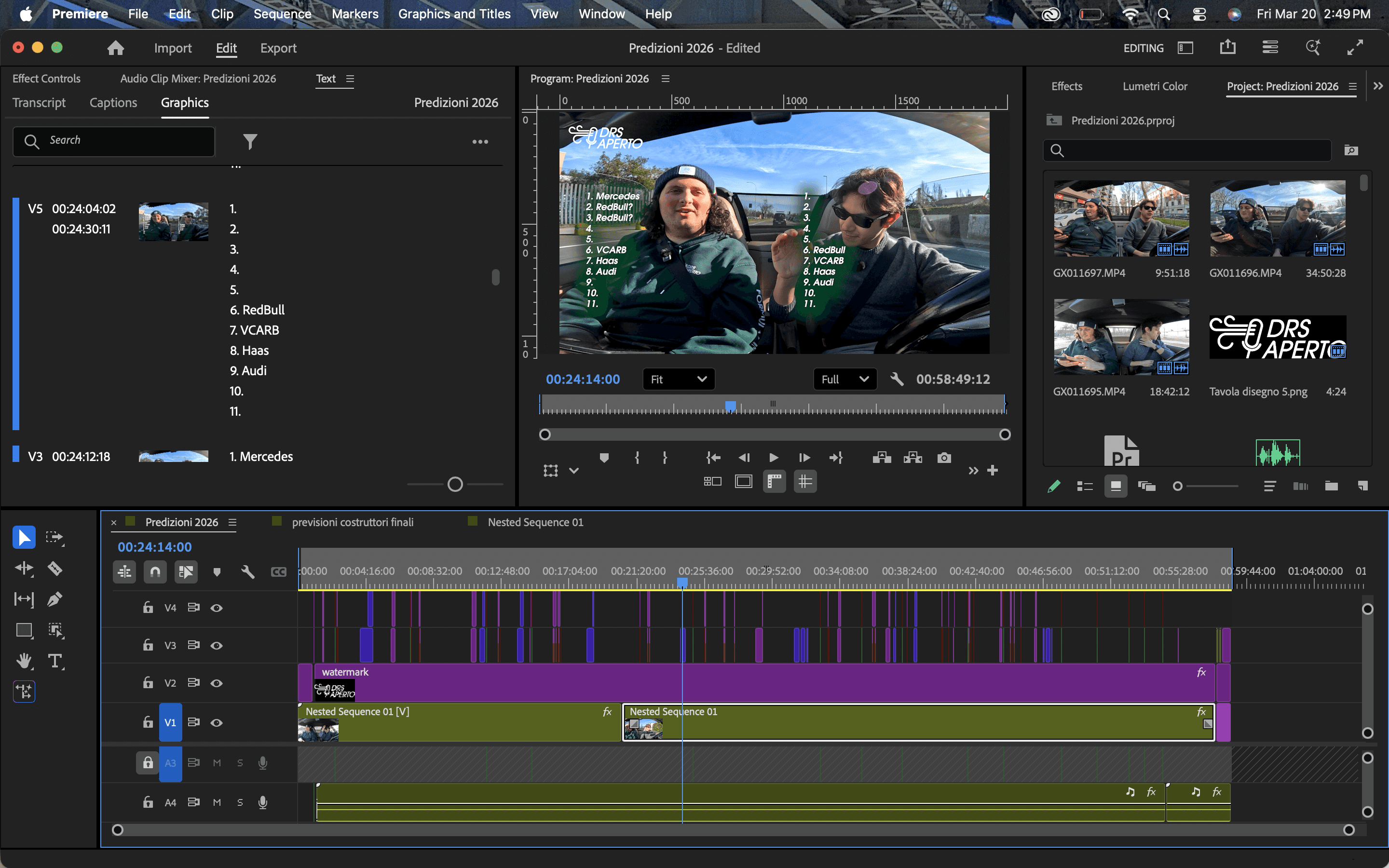 Sound: shooting outdoors and in movement, noise is main factor. We manage to cancel it out with a pair of microphones and by driving at low speeds on secondary roads.