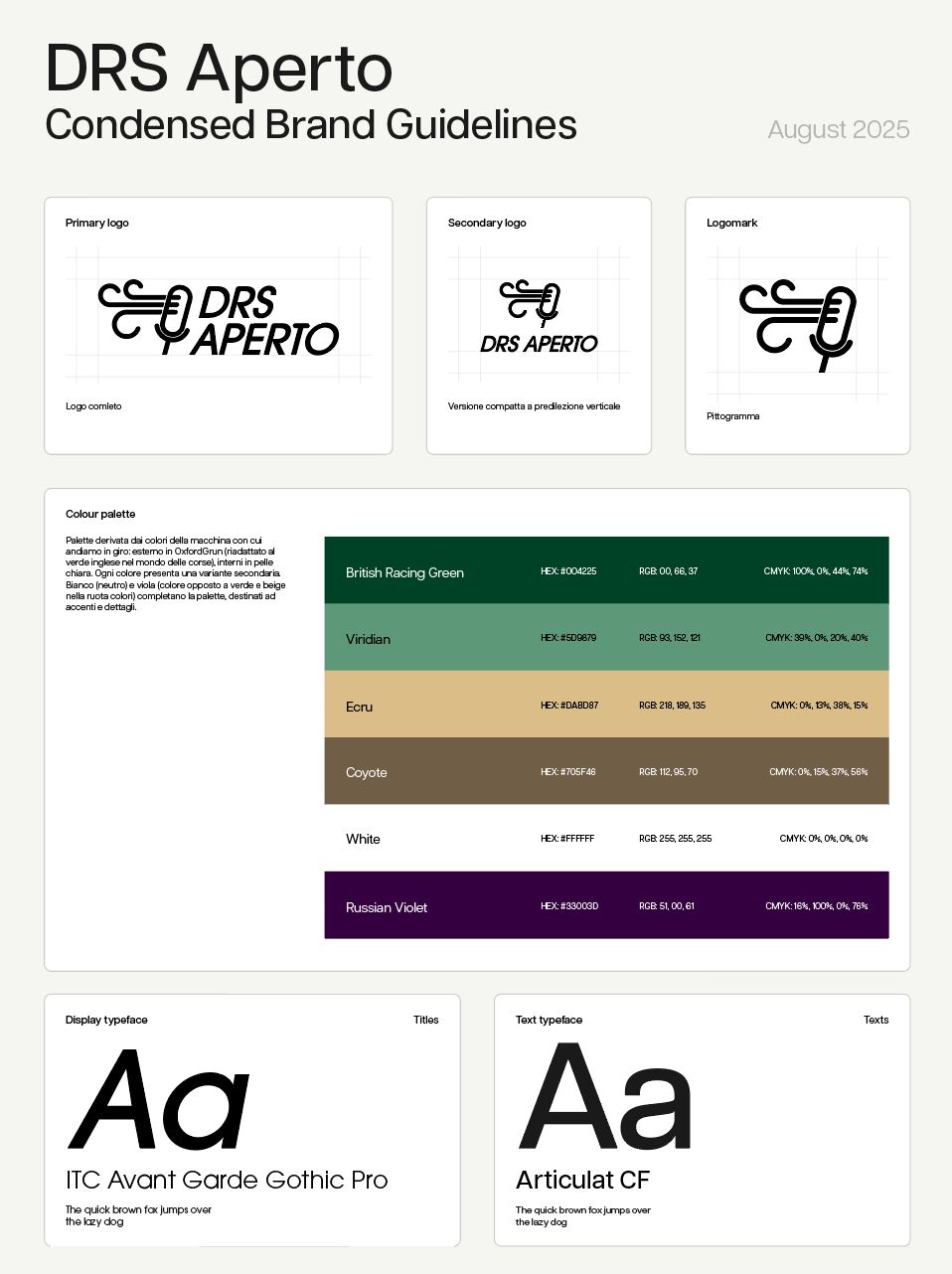 Visually, I created the logo and defined the color palette. This was made bearing in mind the aforementioned values of freshness, lightness and competence - the colors were inspired by our car's bodywork and interior.