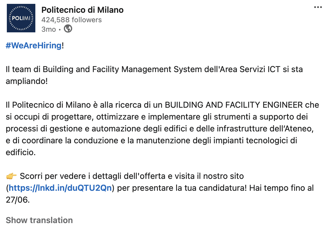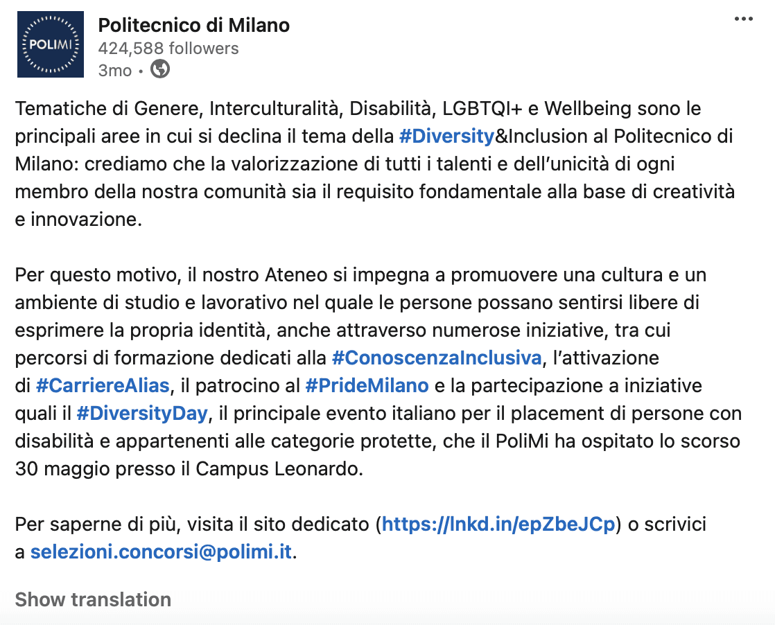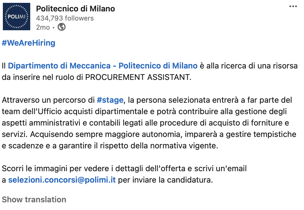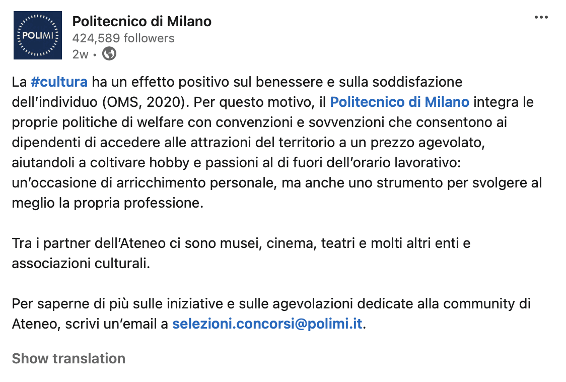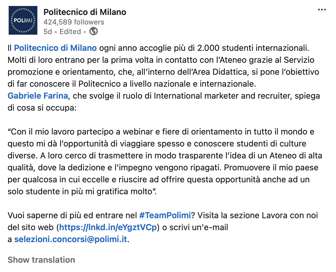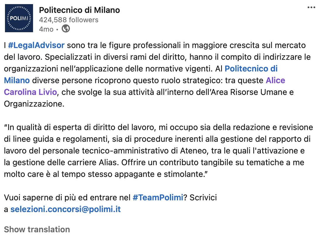 Dividing the content into various headings, with the team of colleagues we promoted open positions, told the peculiarities of the working reality of Politecnico and, finally, engaged and interviewed colleagues of all kinds - making them Ambassadors in their own right.